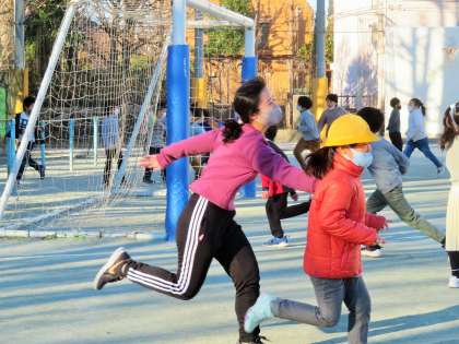 松丘小学校では、始業前の朝遊びに毎日取り組んでいます。今年度は蜜を避ける観点から、1・2年生のみの実施です。