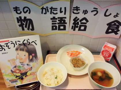 1月の給食は、読書週間にちなみ「物語給食」を実施します。