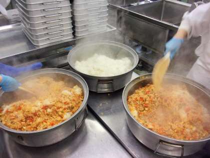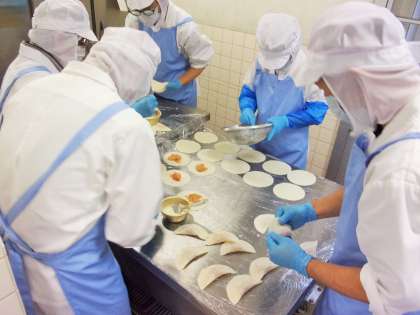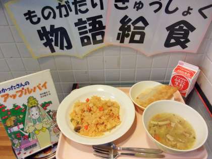 給食のアップルパイは、ぎょうざの皮で作りました。