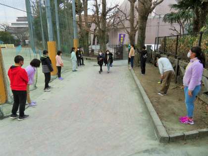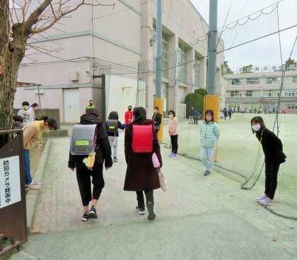 さすが5年生、ソーシャルディスタンスも意識しながらのあいさつ運動です。