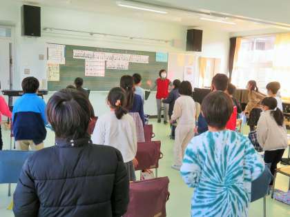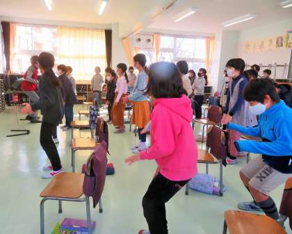 3学期から音楽授業では、リコーダーの学習は一時停止にしています。ボディパーカッションで自らの体を使って、楽しそうに取り組んでいます。