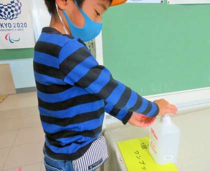 感染症は入口で防ぐことが第一と考えています。朝の検温、健康チェック、健康観察カードへの記入をお願いいたします。