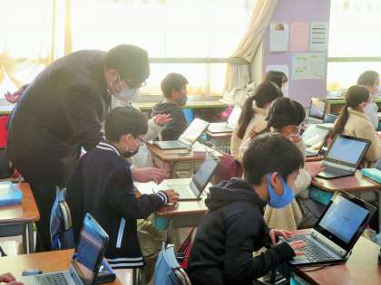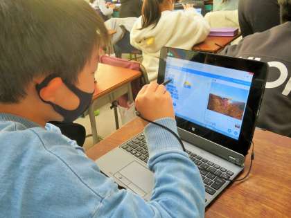スクラッチでプログラミングに取り組みました。このような動きをさせるために、どのような命令をだせばいいのか、考えては試し、試しては考える子どもの姿が見られました。工夫された作品が揃いました。