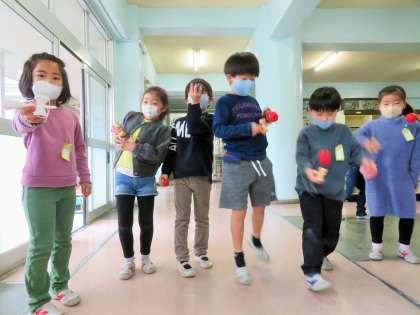 1年生は生活科の学習で、けん玉、お手玉など「むかしあそび」に夢中になっていました!
