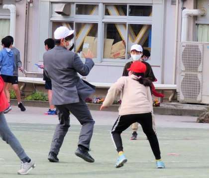 私も2年生、6年生ととドロケイですが、今日も多くの先生が子どもたちと一緒に遊んでいます!