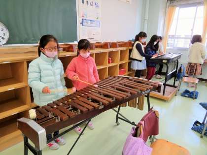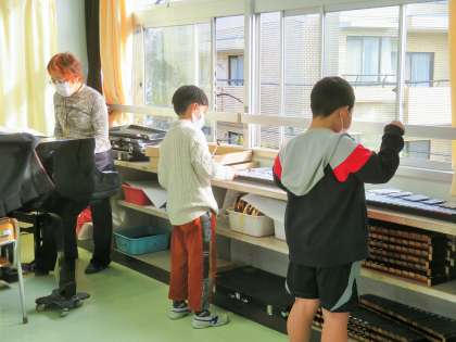 写真は、2年生音楽授業の様子です。