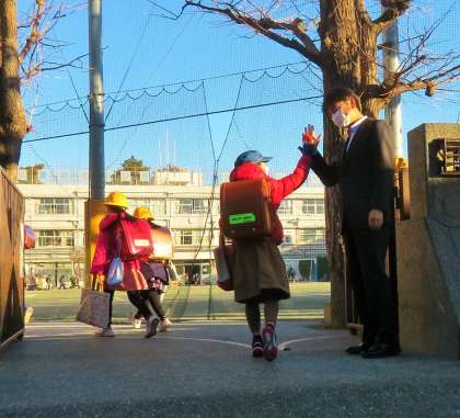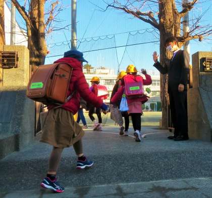毎朝、門に立って子どもたちをお迎えしていると、気持ちのよいあいさつをはじめ、「いつもありがとうございます!」、「昼休みに遊んでください!」など、様々な会話がありお互いが笑顔になります。朝のひと時ですが、とっても楽しい時間です!