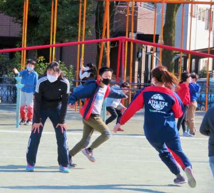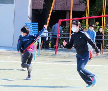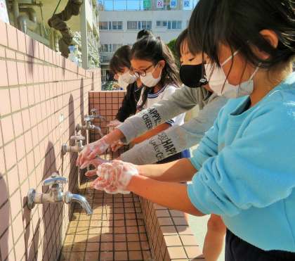 休み時間の終了後は、冷たい水ですが石鹸でしっかりと手を洗っています!