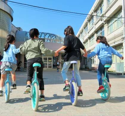 休み時間に一輪車で遊んだり、遊具で遊んだりすることにより、自然とバランス感覚など、様々な力が身についていきます。