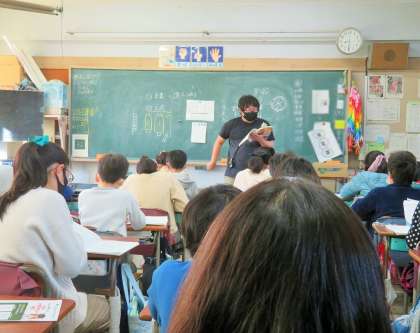 写真は、5年生の様子です。集中して、算数の問題に取り組んでいます。