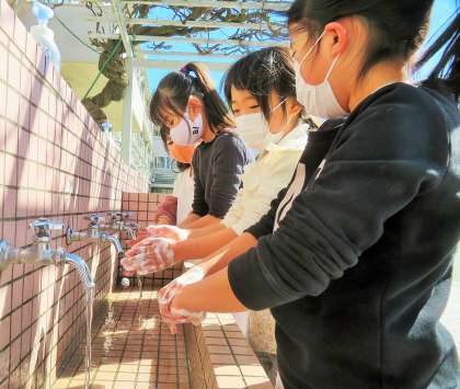 遊んだ後は、石鹸での丁寧な手洗いと、アルコール消毒です。