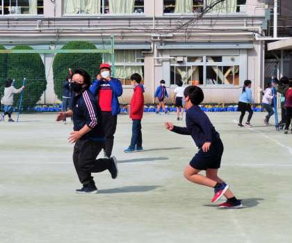 6年生を捕まえるのは、なかなか難しいです。今日も多くの先生が子どもたちと一緒に遊んでいます!