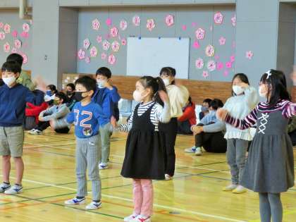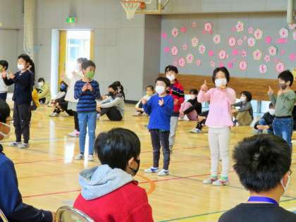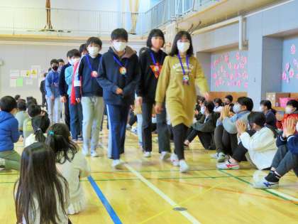 6年生が首からかけているメッセージメダルは、3年生からのプレゼントです!