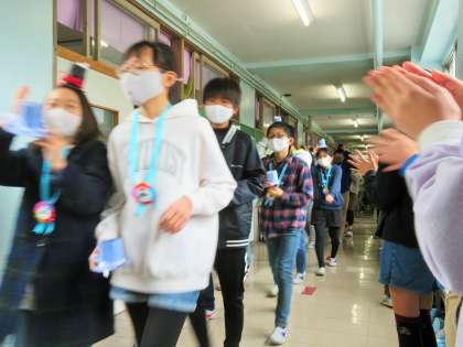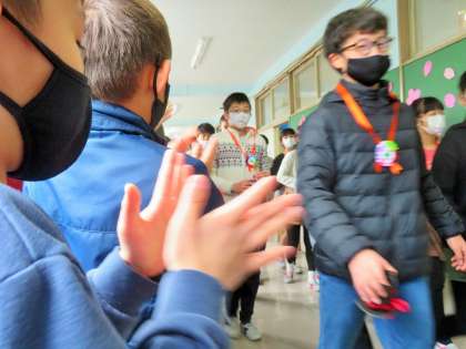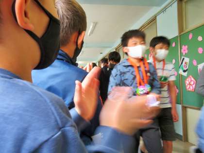校舎内はすべての廊下、階段に在校生が花道を作って、盛大な拍手で6年生を見送りました!