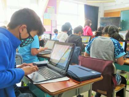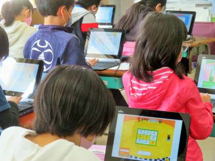 先週末に、すべての教室に無線アクセスポイントを設置し、インタ−ネットに安定してつながるWi-Fi環境になりました。