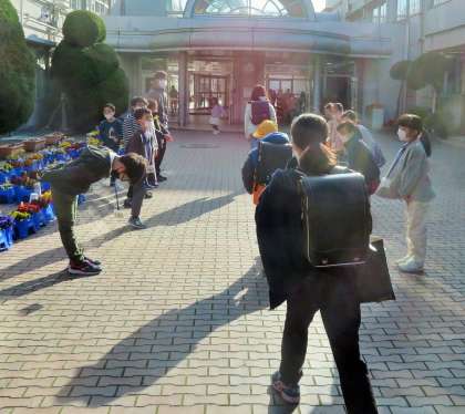 朝夕の寒さは、まだ厳しい日もありますが、日差しが出てくるとポカポカ陽気になります。今週は「優郷の学び舎」あいさつ運動で2年生が担当です。正門と南門に分かれ、登校して来る子どもたちへ元気なあいさつを投げ掛けてくれています。