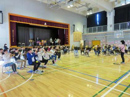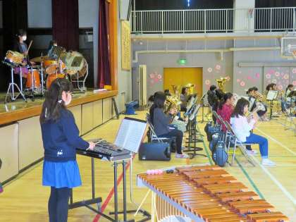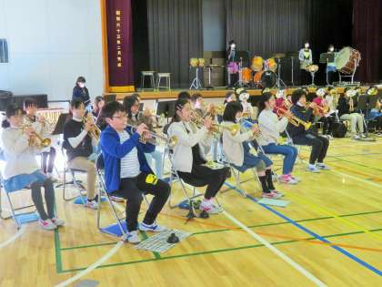 金管バンドの朝練習は、感染症予防対策を徹底しながら取り組んでいます。現在は、「金管バンドコンサート&お別れ会」(保護者の皆様向け)に向けて、本番をイメージしながら練習に取り組んでいます。