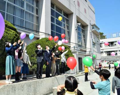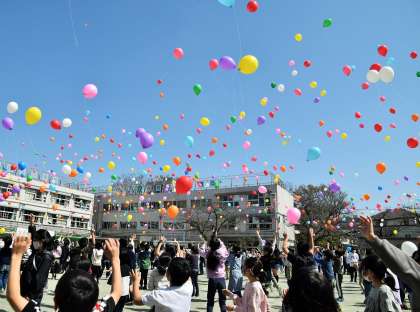 カウントダウンの時を迎えました。すべての教室に加湿空気清浄機を寄贈していただいた同窓会役員の皆さん、このような思い出作りの場を作ってくださったPTA役員の皆さん、手際よくお手伝いをいただいたPTAの皆さんに感謝の気持ちを表し、そして松丘小学校創立65周年記念をお祝いしてバルーンリリースを行いました!