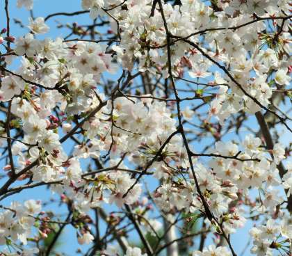 本校の正門の桜は、本日5輪咲いているのを目視で確認しました。卒業式の頃には満開となる見込みです。校舎裏の桜は、もうすでに満開です!