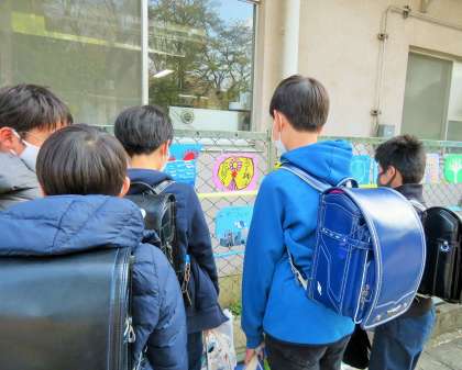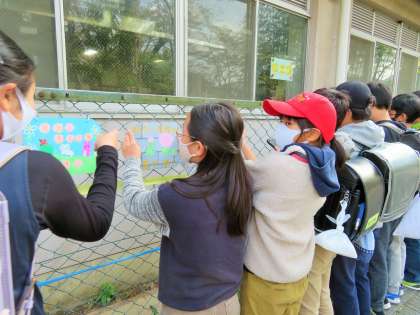 6年生は、卒業制作の「メッセージボード」を取り付けました。このメッセージボードを通行人の方が写真を撮っている場面を目にします。また、「このような作品はいいですね!」と褒めてくださる方もいます。