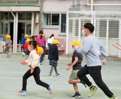 松丘小学校の休み時間は、先生と子どもとの「共遊び」の姿がたくさん見られます。日中は暖かい日が増えてきました。これからも、先生と子どもたちが共に汗を流しながら「共遊び」をしていきます。