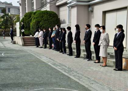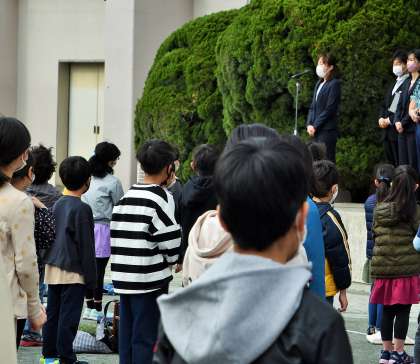 私が朝礼台に立つと、一つずつお兄さん、お姉さんになり、表情の引き締まった子どもたちが、一斉に私の方に注目をしました。