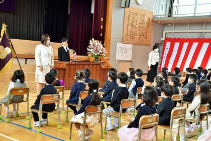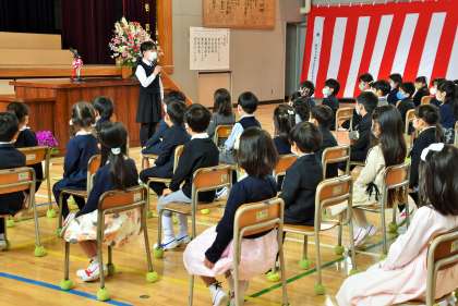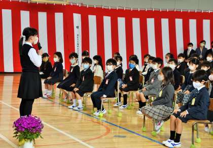担任の先生の発表と、6年生代表児童による「歓迎の言葉」です。さすが松丘小学校の6年生です。1年生が安心できる、心のこもった歓迎の言葉でした。