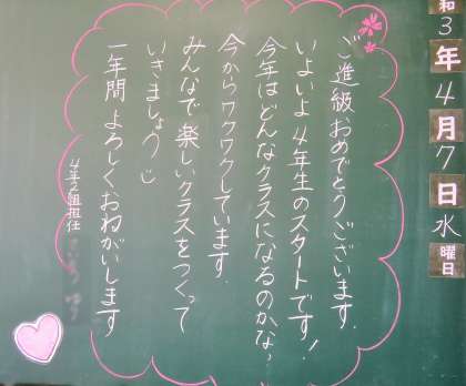 4/7 黒板には温かいメッセージが・・・1