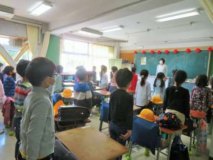 1年生の朝の会では、姿勢正しくあいさつをしたり先生の話を聞いたりすることができています。今日もやる気いっぱいの子どもたちを見て嬉しくなりました。