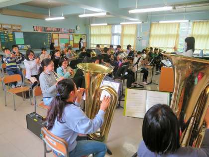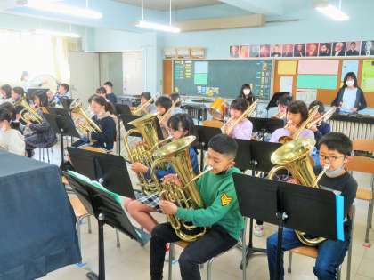 子どもたちは、先生の指揮を見て、息の合った練習をしていました。