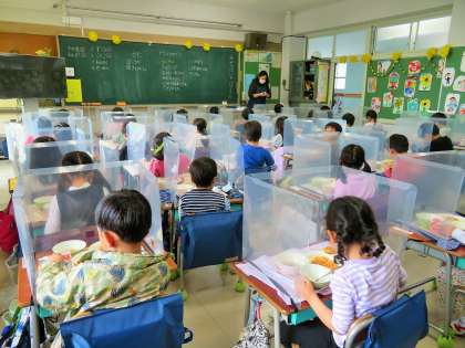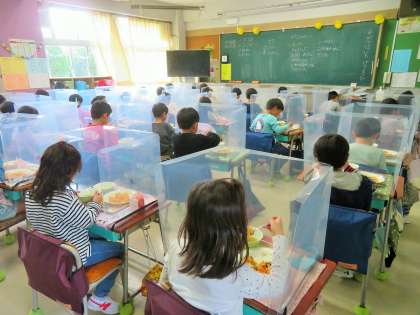 不憫ではありますが、極力お喋りをなくして給食をいただきます。