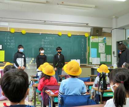 最後に6年生の皆さんへ、「ありがとうございました!」と1年生の元気な声で、本日のお礼を伝えました。1年生が早く松丘小学校の生活に慣れるよう、6年生よろしくお願いします!