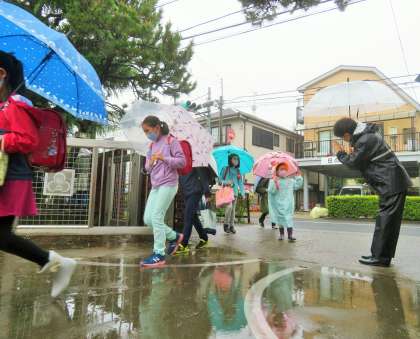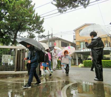 今日は雨の中での登校となりましたが、子どもたちは元気に登校しています。気持ちのよいあいさつをはじめ、「雨の中、ありがとうございます!」「今日は僕の誕生日です!」など、様々な会話がありお互いが笑顔になります。朝のひと時ですが、とっても楽しい時間なのです!