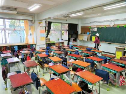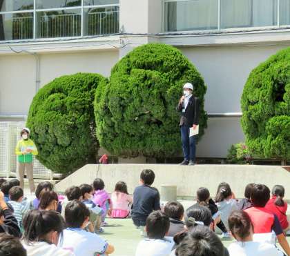 今年度初めての避難訓練は、授業中に地震が発生という想定で行いました。子どもたちは、「お・か・し・も・ち」の約束を守り、素早く、そして真剣に避難訓練に取り組みました。私は出張で不在にしていましたが、副校長先生は子どもたちの話の聞き方が素晴らしかったと褒めていました。