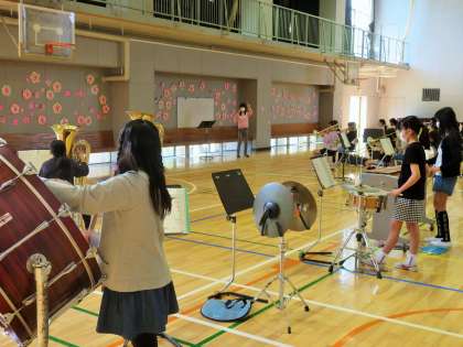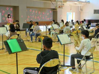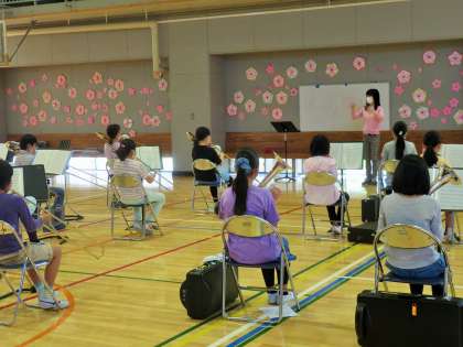 子どもたちは、先生の指揮を見て、息の合った練習をしていました。