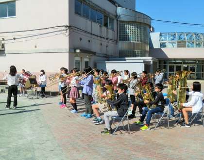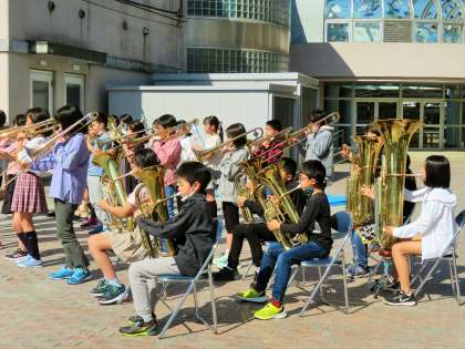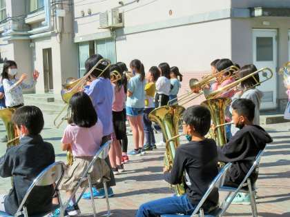 入退場の曲として「崖の上のポニョ」を演奏してくれました。とっても素敵な演奏で盛り上げてくれました。金管バンドの皆さんありがとうございました!