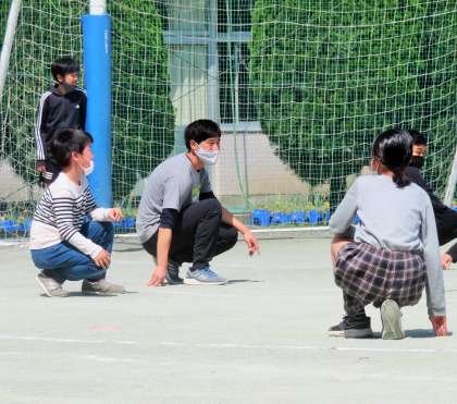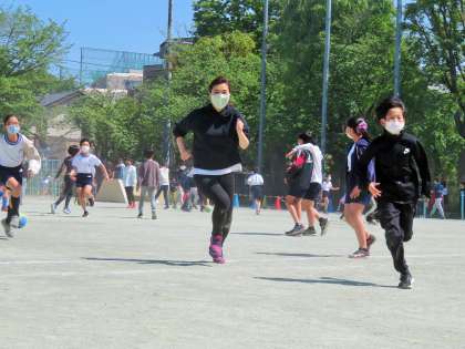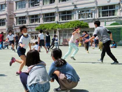 「全員鬼ごっこ」の様子ですが、座って休むこともできる鬼ごっこです。コロナ渦において「マスクを着用」したままでできそうな、よく考えられた鬼ごっこだと感心しました。来週から、実際に体験したいと思っています!