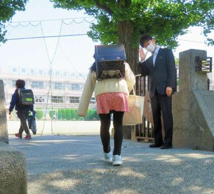 明後日から緊急事態宣言が発令されることが正式に決定しました。このような状況下ですが、子どもたちは元気に登校しています。気持ちのよいあいさつをはじめ、立ち止まって、きちんとあいさつする子も3人いました。「こんな虫を見つけました!」と言って見せてくれる子や「私のお兄ちゃんは○○なんです!」と話してくれる子など、様々な会話がありお互いが笑顔になります。朝のひと時ですが、とっても楽しい時間なのです!