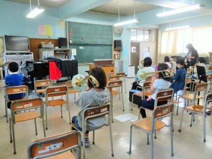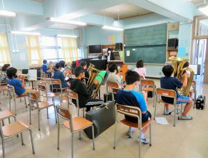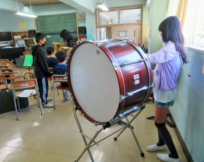 先日の「1年生を迎える会」を温かな会に盛り上げてくれた「金管バンド」の皆さんは、感染症拡大予防対策として学年単位で練習をしています。
