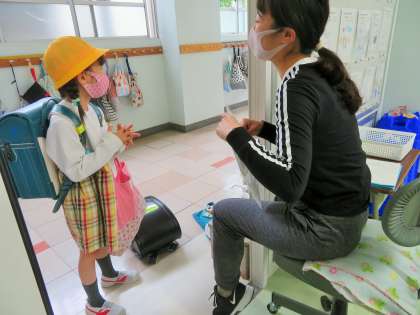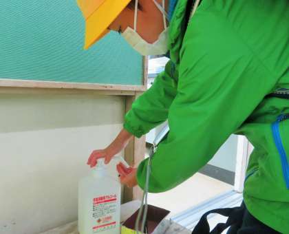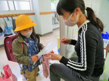 感染症の予防対策として、教室に入る際には、アルコール消毒、「健康観察カード」の提出を徹底しています。