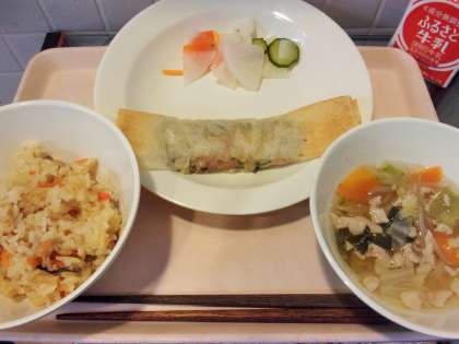 今日は、皆さんの成長を祝い、給食室で中華おこわを作りました。