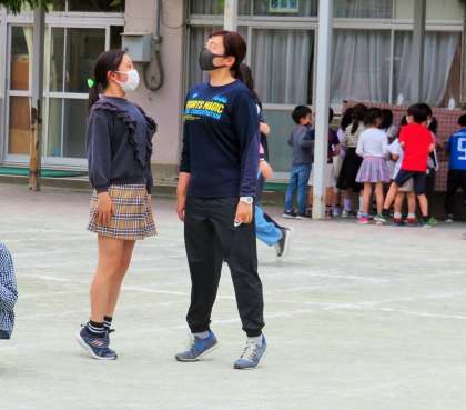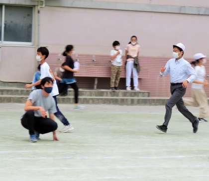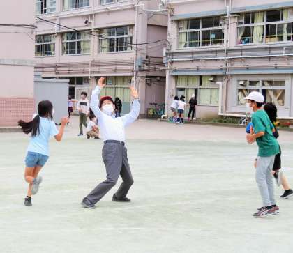 私も5年生と鬼ごっこですが、あえなくタッチされてしまいました!