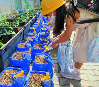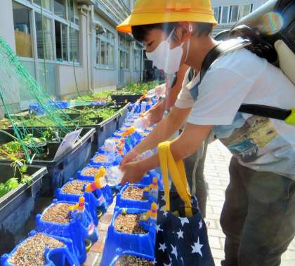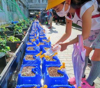 1年生が育てているアサガオは、一週間前に種を植えて、毎日お水をあげていましたが、もう芽が出てきました。「校長先生、芽が出たよ!」と、朝から元気に知らせてくれました。「早いね。よかったね!」と、朝からお互いが笑顔でいっぱいになります!