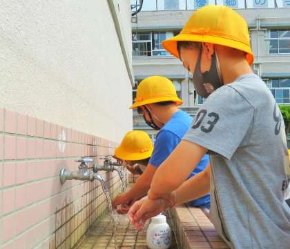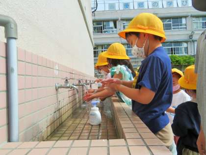 遊んだ後は、石鹸での丁寧な手洗いと、アルコール消毒です。