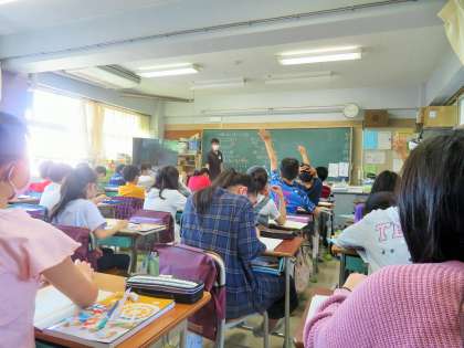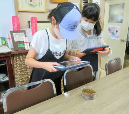理科でインゲン豆の発芽観察を行っています。インゲン豆が発芽するのに必要な条件は何か。教室での常温と、校長室の冷蔵庫の中とで比較して考えています。
