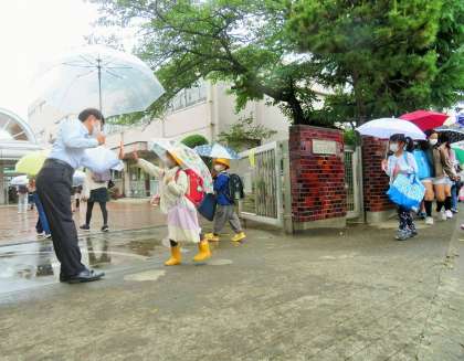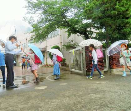 今日は雨や風の中でしたが、子どもたちは元気に登校しています。気持ちのよいあいさつをはじめ、「いつもありがとうございます!」「雨の中、ありがとうございます!」など、様々な温かい言葉があり私の心はポッカポカです。