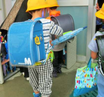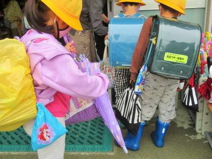 1年生はしっかりと傘をクルクル丸めて傘立てに入れたり、カッパをたたんだりと、自分でできることを増やそうとがんばっていました。