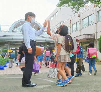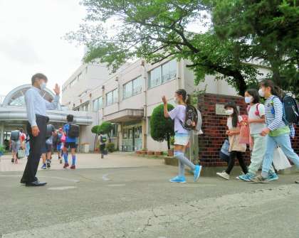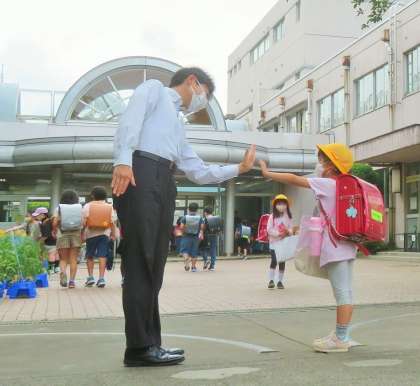 緊急事態宣言の発令中ですが、子どもたちは元気に登校しています。気持ちのよいあいさつをはじめ、「いつもありがとうございます!」と感謝の気持ちを言葉にできる子、「こんな虫を見つけました!」と言って虫かごを見せてくれる子など、様々な会話がありお互いが笑顔になります。朝のひと時ですが、とっても楽しい時間なのです!