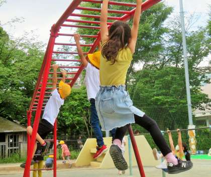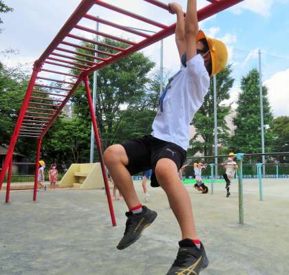 松丘小学校では、始業前の朝遊びや休み時間の外遊び(校庭・屋上・体育館)に毎日取り組んでいます。うんていや一輪車、登り棒、鉄棒で遊んでいる子もいっぱいいます。私は、「健康・体力づくり」の原点は外遊びであると考えています。