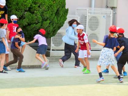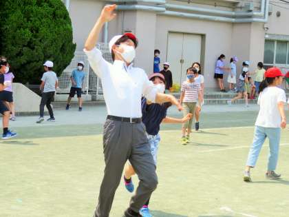 私も5年生とドロケイですが、今日も多くの先生が子どもたちと一緒に遊んでいます!